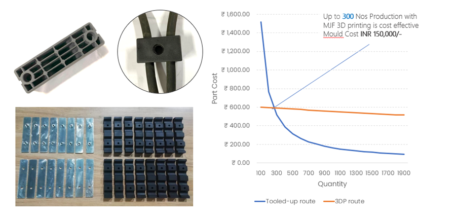 A custom heli-coil drill jig was manufactured using HP MJF to improve drilling accuracy and reduce rejection rates.